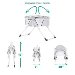 - DESIGNED FOR ON-THE-GO: Lightweight with a quick folding mechanism, it’s easy to set up, fold and tuck back & carry home. Compact, the full bassinet dimensions are 40” L x 36” W x 20” H (inches), whilst folded dimensions are 25” L x 7” W x 19” H (inches).