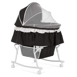 - FUNCTIONAL FEATURES: The handy storage basket below the bassinet allows you to keep baby essentials at hand. The Lacy features a multipurpose full canopy that is part mesh part fabric and also helps keeps bugs and insects at bay