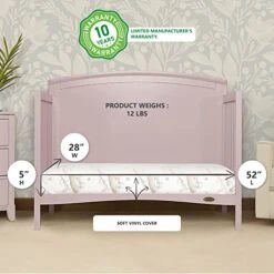 - PROD SPECS: Fits all standard size cribs and toddler beds for years of use, comes with 10- Year Warranty Manufacturerβs warranty. Dimensions: 52L X 28W X 5H inches