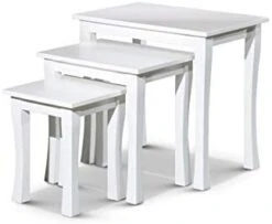 - STYLISH DESIGN: Add a modern touch to your décor with this contemporary 3-piece nesting table set. These tables feature a modern flared leg, simple contemporary lines and a clean white finish.