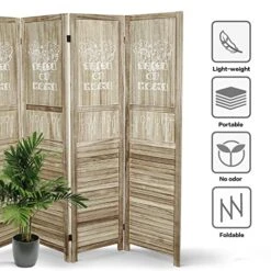 - 【Humanized Design】The size of the partition room divider is designed based on the height of most people. It can meet the needs of most people when using wooden room divider screens, with a single panel size of 67″H*16″W and unfold size of 67″H*64″W. The full wooden room divider panel can better block your privacy and provide you with a space of your own. The rectangular wooden legs at the bottom can also greatly increase stability and safety