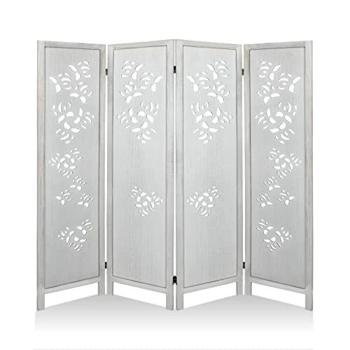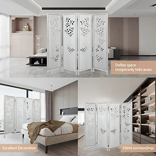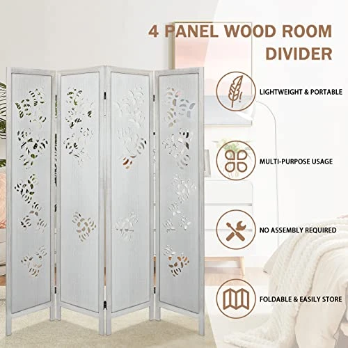 - πγPORTABLE AND FOLDABLEγ: Suitable for all styles of home decor, double hinges that can be turned in any direction, a great wooden four-panel room divider that looks great from the front and back. This room divider wall can easily and perfectly separate your rooms and looks very elegant.