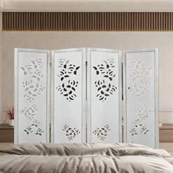 - πγPORTABLE AND FOLDABLEγ: Classical wooden room divider combined with carved design, suitable for different styles of places. Such as bedroom, living room, home, office, video conference, flat, studio, hotel, dining room, garden, terrace etc. This freestanding and folding privacy room divider is perfect for modern living room and bedroom screens are simple dividers for work and life.