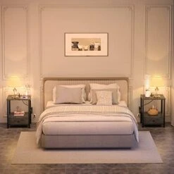 - 【Simple Design & Multifunctional Night Stand】Nightstand set of 2 use industrial simple design to make your bedroom more gorgeous and sleek. Bedside table can be used as nightstand, couch side table, sofa end table, kids night table, it is suitable for small spaces and is a great addition to your room. You can explore more ways to use it.