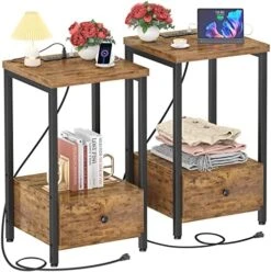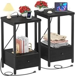 - 【Bedside Table with Storage】The end table bedroom set of 2 with a drawer and 2-tier storage open shelf, the drawer can smoothly easy to pull in and out and has anti-falling design, prevent the drawer from falling. Plenty of space to store your family photos, lamp, books and other little items. It will always keep your daily items within arm’s reach.