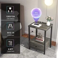 - 【Easy Assemble & Move】All the screws and tools are included, come with easy to follow instructions and labeled parts to help you install the nightstand with charging station easier within 15 minutes or faster. 18.2 pounds of weight can be easily and conveniently moved to the bedroom or living room.