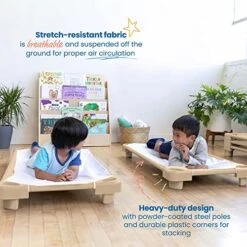 - Built to Last: Made with powder-coated steel poles, durable plastic corners, and heavy-duty, stretch-resistant breathable fabric; rest cots are designed for daily use in early childhood facilities