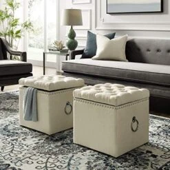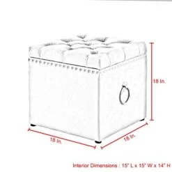 - EXTRA STORAGE A storage ottoman is one of the handiest pieces of furniture you can have in your home. Hinged lid allows you to store magazines, books, video game controllers, TV remotes, pillows, throws, kid toys or blankets. It is not only attractive, but also an incredibly functional furniture piece. Interior dimensions: 15″L x 15″W x 14″H