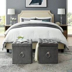 - BUTTON TUFTED – On the outside this ottoman is covered in your choice of color in velvet or linen fabric with cushioned top for a comfortable place to put your feet up. Handcrafted diamond button tufted hinged lid brings exceptional comfort and makes this peace a divinely beautiful part of your home interior