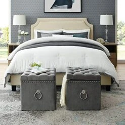 - BUTTON TUFTED – On the outside this ottoman is covered in your choice of color in velvet or linen fabric with cushioned top for a comfortable place to put your feet up. Handcrafted diamond button tufted hinged lid brings exceptional comfort and makes this peace a divinely beautiful part of your home interior