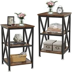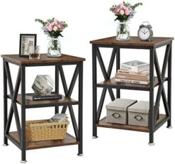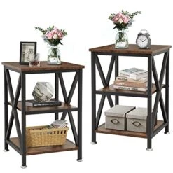 - βStable Structure – Supported by X-shaped strengthened steel frame, this side tables living room is sturdy enough to hold up to 66 lbs. Size: 16″D x 16″W x 24″H.