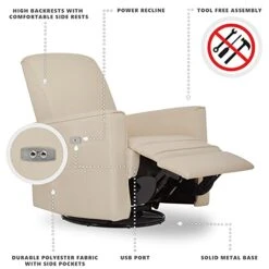 - POWER RECLINING MECHANISM: Reclining has never been this easy, thanks to Harlow’s convenient electronic push-button panel on the armrest. There is also a built-in USB port (power cord included) to ensure your electronics are always charged and at hand