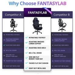 - 【ROBUST CONSTRUCTION】 With FANTASYLAB, you can rest assured that you’re getting a chair made to perfection with special attention to detail. The chair has an integrated metal frame, explosion-proof gas spring at international standards, and a heavy-duty metal base with smooth-rolling castors, making it a superb and stable structure. The chair has a maximum weight capacity of 400LBS.