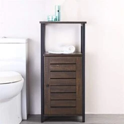 - [MATERIAL]: The towel cabinet is made of durable steel tube with black sandy powder coating and high-grade MDF (Medium Density Fiber, not solid wood) boards with espresso finish; the retro style could add some rustic industrial elements to the environment.