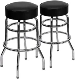 - Pack of 2: Form and function blend seamlessly in this round, swivel seat barstool that will be right at home in multiple aesthetics from industrial to vintage. A sturdy double ring construction and durable upholstery, this bar height stool is a must have.