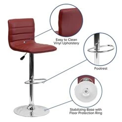 - CUSTOMIZABLE COMFORT: Seat adjusts from bar to counter height; 17.625″ chrome base with footrest promotes good posture and relieves pressure from the legs