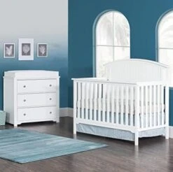 - ASSEMBLED DIMENSIONS: Crib measures 56”L x 30.8”W x 47”H. Dresser measures 38″ L x 20.5″ W x 38.5″ H (35″ H without dressing kit). Designed and engineered to meet or exceed the highest safety standards. Dresser includes anti-tip kit for safety