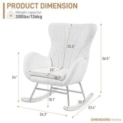 - Mild & Comfy Rocking: The gentle swing function of the rocking chair can bring a soothing effect, which is comfortable for people to read books and watch TV in the rocking chair, but also can be placed in the nursery for mothers to sit in the chair to soothe and put their babies to sleep.