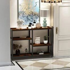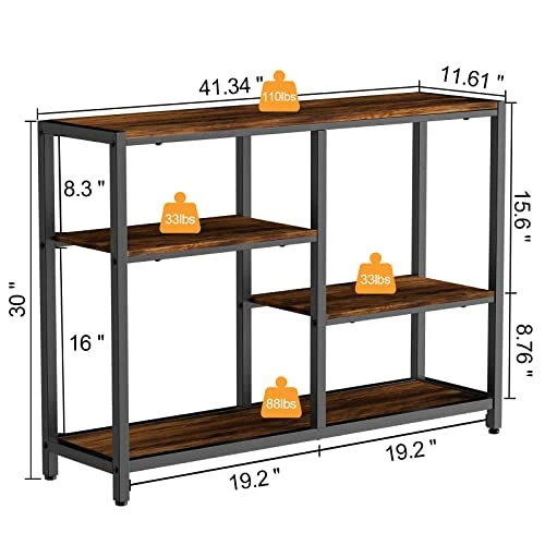 - 【Space Saving】Our console table offers a large storage capacity with 3-tier shelves,tabletop top can holds up 100lbs,the second tier can hold up 33lbs and the lowest one can hold up 88lbs,which allows to place boxes, books and vases and and other items.It saves space and helps keep your room neat.