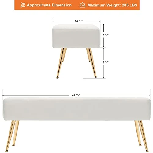 - 【A Breeze to Assemble】 The dimension of this bed bench is 44.75″D x 15″W x 17.25″H. All necessary hardware and instructions are included in the package. Easy to assemble in minutes. you can put it together and then enjoy sitting.