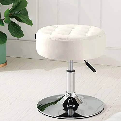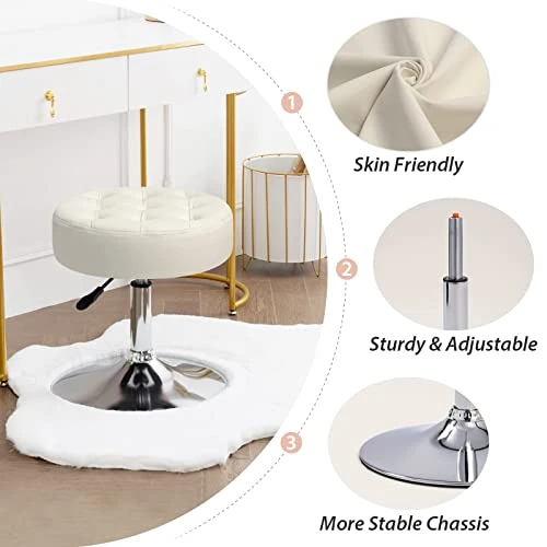 - ★COMFORTABLE AND STURDY:★ Upholstered PU fabric over 250g mean the service life of stool longer than other makeup vanity stool, filled with high desity foam, Skin-Friendly, elastic and soft. The base size reach 16inchs in 1.2mm thickness,let the stool enough sturdy.