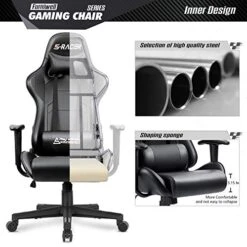 - Material: This gaming chair covered by premium carbon fiber pu leather is beautiful and tactile. Strong metal frame designed to help promote a comfortable seated position.