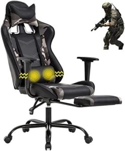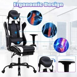 - [Liberate Your Feet] gaming chair has a lumbar pillow and a retractable footrest. when you feel tired for sitting all the time? Sure. Then you can choose the chair with footrest to relax your feet. When you don’t want to straighten your back and sit, just put down the backrest, take out the footrest,turn on your favorite music, lie down and release your waist muscles,put your feet up, and to start enjoying the comfort!