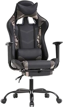 - COMFORT FROM EVERY ANGLE – Our brand-new ergonomic racing chair is thickly cushioned for maximum comfort, whether you’re spending long hours at the office, in front of the computer, or gaming. Covered with breathable premium PU leather, the chair is equipped with freely adjustable lumbar support and a headrest pillow to protect your spine and neck, while the adjustable reclining feature allows users to lock in any reclining position, from 90-155°.