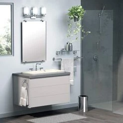 - Low profile clear glass design has the option to be mounted flush or protruding forward for deeper shelf space, accentuating your walls and opening countertops.