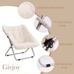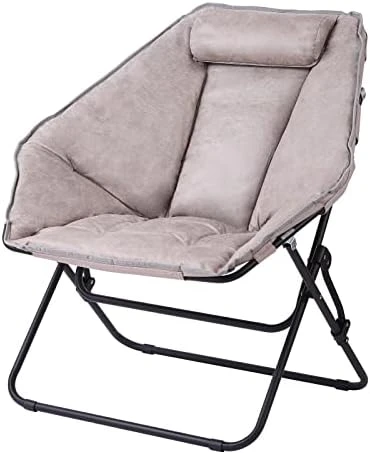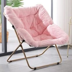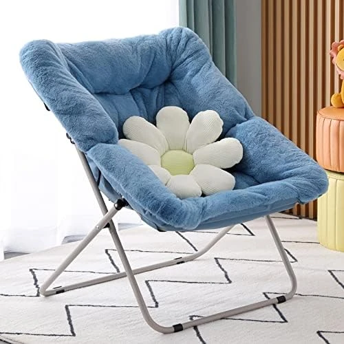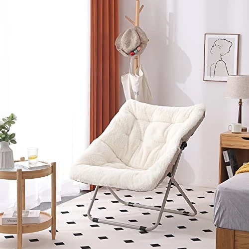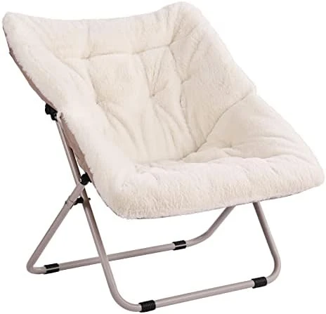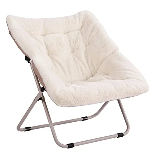 - Foldable and Easy to Use: A foldable steel frame holds up to 265 pounds and no assembly is required. Folding flat when not in use, making it easy to hide this faux fur saucer chair out of sight without taking up a significant amount of room in tight spaces. This saucer chair also has a safety locking mechanism on the leg for added support
