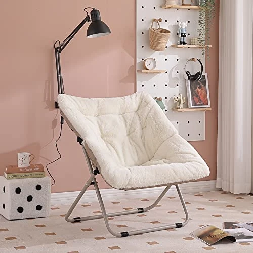 - Strong and Cozy Living Room Chairs: Featuring a sturdy metal frame, plus arched backrest, whether you’re reading your favorite novel, watching a new TV show, or even doing homework, this furry chic saucer chair is just what you need to make everything more comfortable