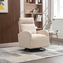 - Compact Size – The swivel chair measures 35.24”L x 25.6”W x 41.34”H and can hold up to 250lb weight. The stylish glider rocker looks good in your living room, baby room, study or any casual area without taking up too much space.