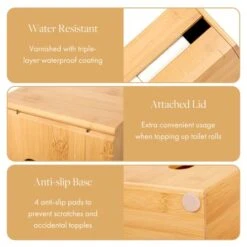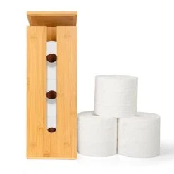 - Fits 3 Mega Rolls: The bamboo toilet paper roll storage can stack up to 3 mega toilet rolls at a time. The wooden holder measures 5.9 x 5.9 x 16.1 inches and is an ideal bathroom accessory to keep your space tidy