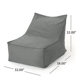 - Includes: One (1) Bean Bag Lounger. Material: Water Resistant Fabric. Composition: 100% Polyester