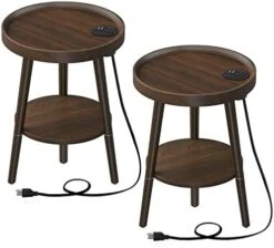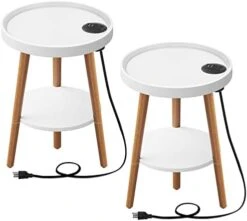 - [Safe and Reliable Materials] 2 tiers round side table is made of medium-density fibreboard and solid wood, waterproof and anti-scratched. The legs is made of solid wood, sturdy and durable offering you a safe and healthy living environment.