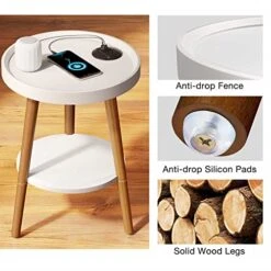 - [Safe and Durable] The round end table with anti-drop fence prevents your items from falling and prevents sharp parts from scratching your kids. Sturdy solid wood legs and non-slip mats under the legs ensure stability and effectively protect the floor. Top surface supports up to 55lb/25 kg.