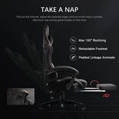 - 【Superior Design Features】The 360°rotating multi-directional racing-car rollers; the maximum inclination angle of the backrest of the gamer chair is 150°, with a retractable padded footrest and linkage armrests. When you’re tired, you can pull out the footrest, recline the chair back, connect to bluetooth, and lie back in the chair to enjoy 3D surround music. This office gaming chair is your ideal seat for work, study and entertainment.