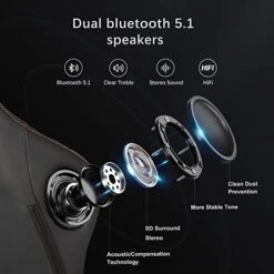- 【5.1 Compatible Bluetooth Gaming Chair】Original designed with dual Bluetooth 5.1 speakers. The surround sound system brings out the best in your entertainment, delivering remarkable and richly detailed stereo sound out loud in solid bass and clear treble. Connect it to your smartphone, tablet or other Bluetooth-enabled devices, and enjoy music, mobile game or movie with thrilling, cinema-like sound from your gaming chair.