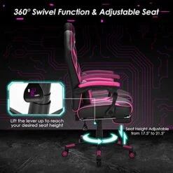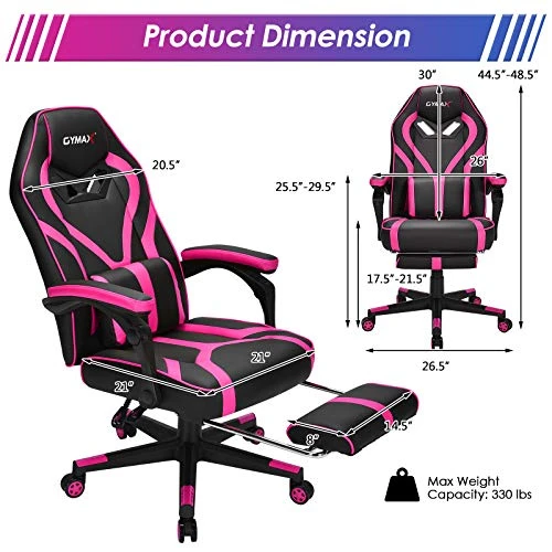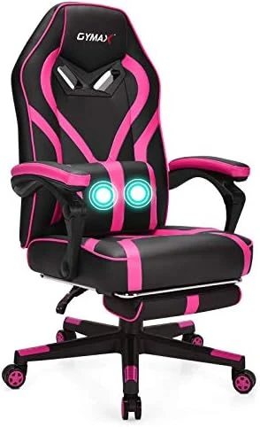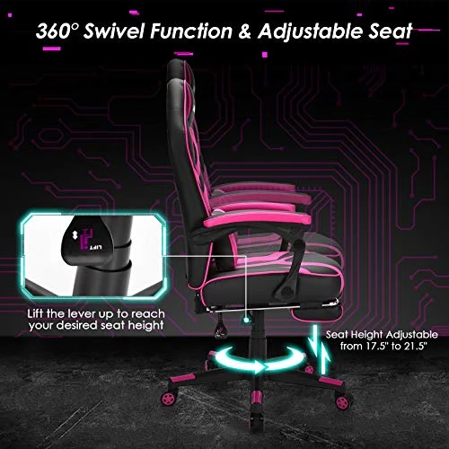 - 【Comfortable Seating with Footrest】Equipped with a high backrest, thick padded seat cushion and massage lumbar pillow, this gaming chair gives you strong support for your whole body, including your neck, shoulders, back, waist and pelvis. Additionally, the retractable footrest is designed for you to take a nap when you’re tired.