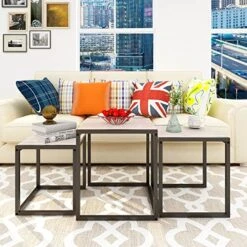 - This modern nesting tables include a large table(17.72″ W x 17.72″ D x 19.69″ H) a medium(15.75″ W x 15.75″ D x 17.72″ HοΌ and a samll table (13.78″ W x 13.78″ D x 15.75″ H).