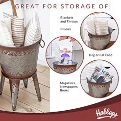 - Portable, Sturdy, Strong :These Metal Storage Bin are sturdy to not be easily tipped over because of the heavy bottom and strong enough to store heavy items like a sack of pet food but can be easily lifted and can be moved around the house.