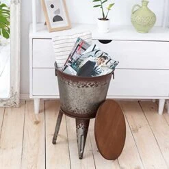 - Perfect Size: This is a Large Barrel table that is 19″ tall with 14″ Top Diameter. Spacious for any kind of things in the house that you can stash inside. Store blankets, pillows, throws, dog food, cat food, books, toys, gardening tools etc