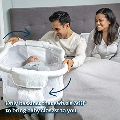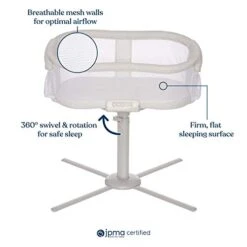 - Two convenient storage pockets keeps baby’s necessities within reach. Now, your little one can rest safely and comfortably at your side. Also includes a waterproof mattress and one machine-washable fitted sheet.