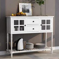 - 【Sideboard cabinet measurements】42″ L x 14″ W x 34.2″ H. Weight Capacity: Top shelf: 115lb; Drawer: 44lb; Bottom shelf: 66lb. Easy assemble, simply attach the four base legs and bottom shelf