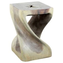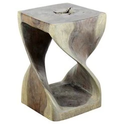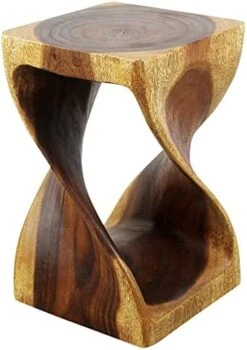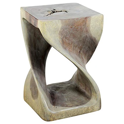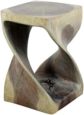 - The Original Twist Stool Design, Hand-carved and completely eco-friendly is this Twist Stool at 10 inches square by 16 inches high. The beauty of this design lies in its simplicity. It’s bold, yet gentle, rustic yet refined. One-quarter twists support this elegant piece, which can serve as an end table, display stand, or stool for last-minute seating.