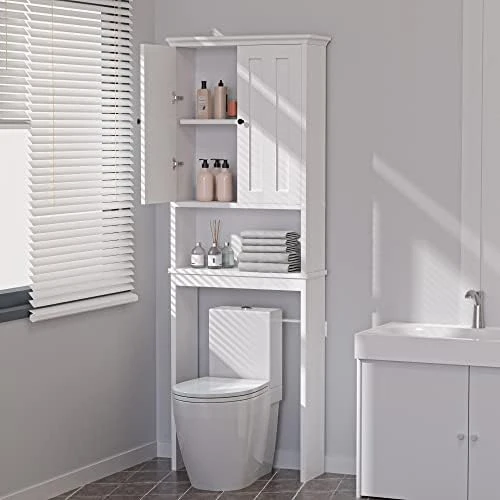 - 【Space-saving Design】Designed to fit behind most toilet setups, this over the toilet storage includes an anti-tipping device for added stability. Keep your bathroom organized without sacrificing too much space with this above toilet storage cabinet.