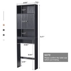 - 【Convenient Use】The overall dimensions of this bathroom organizer over toilet are 24.8”(W) x 7.87”(D) x 76.77”(H), and the bottom shelf is 35.8 inches from the floor, fitting most standard-height toilets. The shelves have a maximum load capacity of up to 22 lbs, allowing you to store all your bathroom essentials within reach.