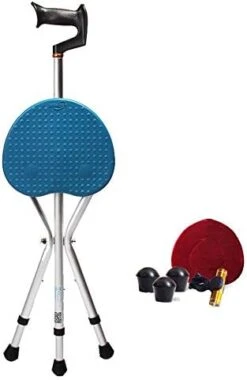 - â—‡Great for people with stenosis,360 rotation flashlight very handy, height adjustable, get extra 3 rubber cups for tripod legs and seat cover comes fully assembled