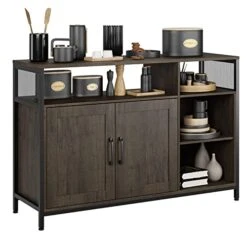 - INDUSTRIAL FLAIR – Bathed in warm wood textures and embellished with black metal frame for graceful industrial beauty, the industrial buffet cabinet still adopts distinctive metal mesh to enrich the look, which makes it an easy complement to rustic, farmhouse and modern style