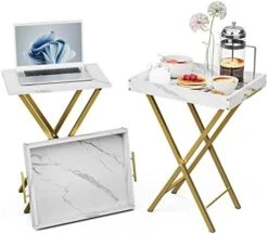 - 【Great Stablity】The HMFOR tray tables has a gold “X” shaped tubular steel frame, non slip buckles and a sturdy table top design makes the foldable table more durable for the daliy use.